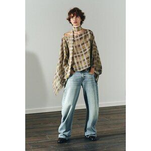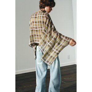 Cape with a round neck and wide sleeves. Scarf detail in the same fabric.