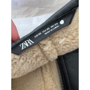 ZARA COLLECTION DOUBLE FACED COAT Faux Leather Sherpa XS