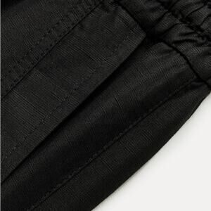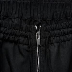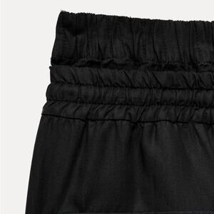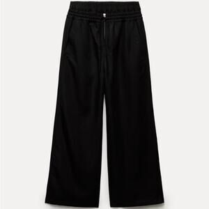 Pants made of lyocell and 20% linen. High rise and double elastic waistband with drawstring. Front pockets. Front metal zip closure.