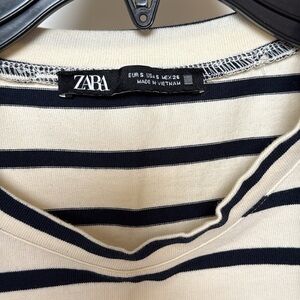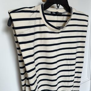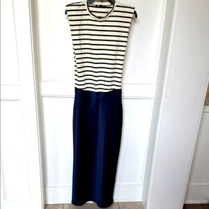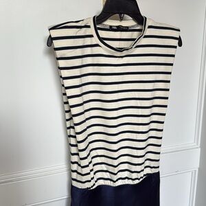 ZARA CONTRASTING SATIN EFFECT MIDI DRESS Cream Navy Stripped Colors SIZE SMALL