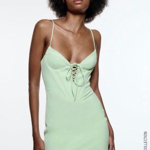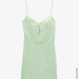 Beautiful Mini dress with sweetheart necklace and adjustable spaghetti straps. Opening with self-ties. Tonal matching inner lining. Side hidden inseam zip closure.