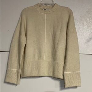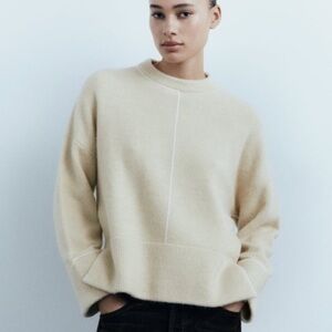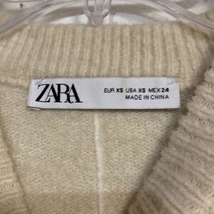 ZARA CREAM KNIT SWEATER WHITE PIPING XS WOMENS