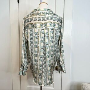 ZARA CREAM SEAFOAM CHAIN LINK BUTTON DOWN BLOUSE SIZE LARGE