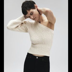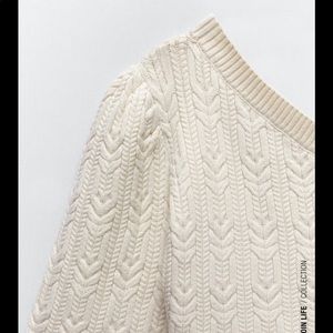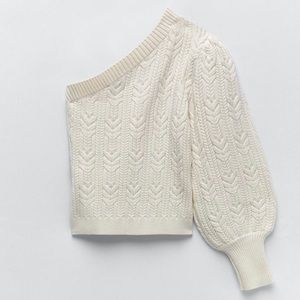 ZARA CREAM WHITE ASYMMETRIC KNIT SWEATER SMALL