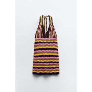 Halter dress featuring an adjustable V-neck with ties in the same fabric.