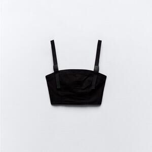 Straight neck crop top with straps. Side hidden in-seam zip closure.
