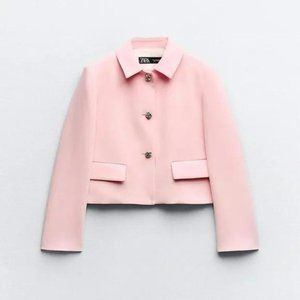 ZARA CROPPED BLAZER WITH TEXTURED BUTTONS