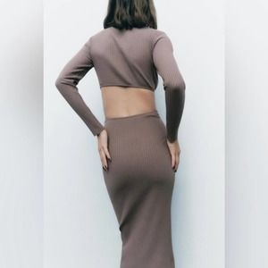 ZARA CUT OUT RIBBED KNIT DRESS MINK BROWN