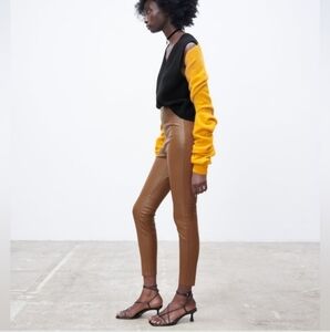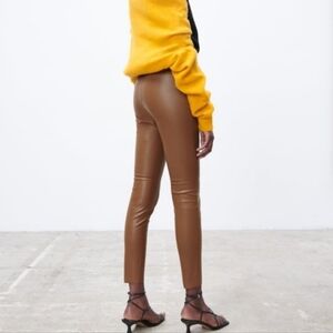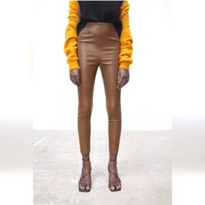 ZARA Camel high waisted faux leather leggings. Size M NWOT