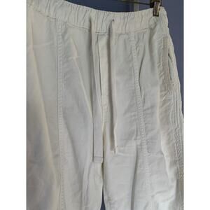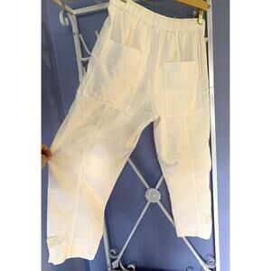 Elevate your fashion game with these stylish ZARA cargo pants in a creamy off-white color. Perfect for any season, these pants feature an elastic waist for maximum comfort and convenience, along with several handy pockets to keep your essentials close. The solid ivory color is perfect for pairing with a variety of tops and shoes, making these pants a versatile addition to any wardrobe.