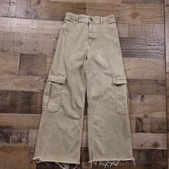 ZARA Cargo Pants Women’s US 4 Sage Khaki Utility Cropped Streetwear High Rise