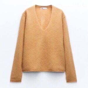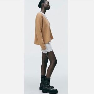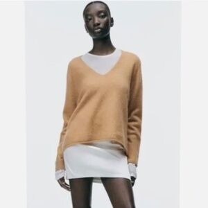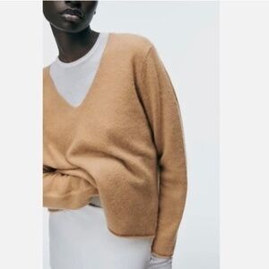 ZARA Cashmere V Neck Boxy Sweater in Camel - M/L