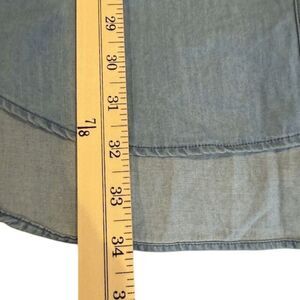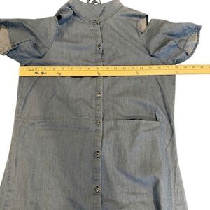 ZARA Chambray Denim Blue Shirt Dress Collared Open Back Button Front Cold Shoulder XS. Excellent condition. See photos for details and measurements. Lightweight, front pocket, short sleeves. View my closet to add other items and bundle to save with one shipping fee!