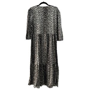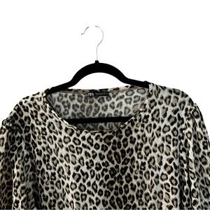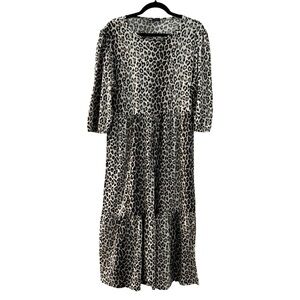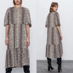 ZARA Cheetah Print Tiered Puff Sleeve Maxi Dress Sz L