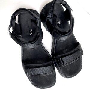 ZARA Chunky Lug Sole Strap Sandals Black EU 38 • fits US 8.5/9