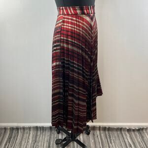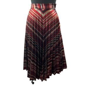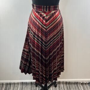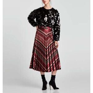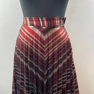 ZARA Claret Metallic Black Red Midi Skirt Chevron Pleated Waistband XS X-Small