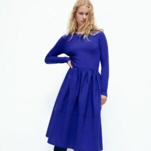 ZARA Cobalt Blue Dress size medium combination long sleeve