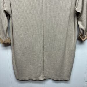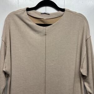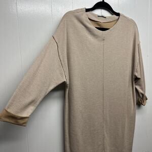 Zara Collection women's sweater in light brown. Round neck. Dropped shoulders. 3/4 folded sleeves. Ribbed. Long length. In good used condition. No stains, tears or holes.