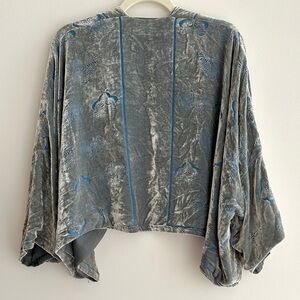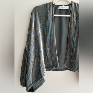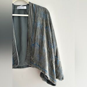 ZARA Collection Velvet Floral Cardigan, Green/Blue, Size Medium