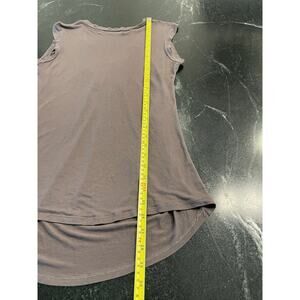 sleeveless, V-neck, shirred bodice at sides , rounded front hem, HI LO design with front length @29" From shoulder seam to hem and back length @26" From shoulder to hem