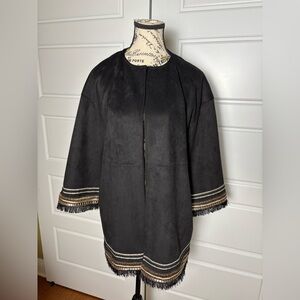 ZARA Combination Faux Suede Embroidered Fringe Hem Jacket Black