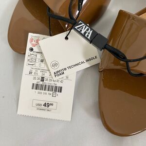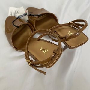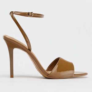 ZARA Coquette Light Brown Patent Leather Strappy Lace Up Stiletto High Heels 6.5