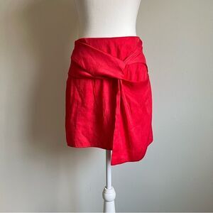 ZARA Coral Red Sateen Mini Skirt with Knot Detail Bloggers Fave Size XS