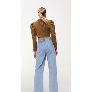 ZARA Corduroy Puff Sleeve Gold Buttons Front Crop Top Olive Green
