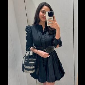 ZARA Cotton Balloon Sleeve Mini Dress 🖤✨ NWT