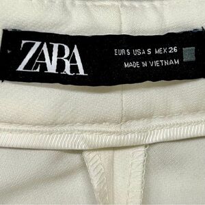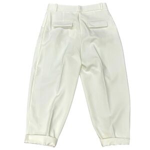 These stylish Zara trousers are a wardrobe staple. Crafted in a soft cream color, they feature a flattering tapered leg with cuffed hems and pleated front detailing for a polished, modern look.