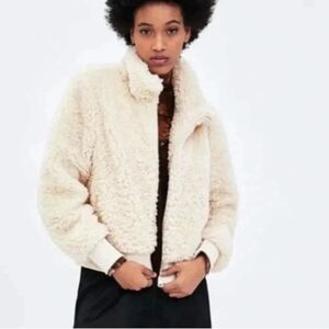 ZARA Cream Teddy Sherpa Bomber Fleece Jacket Size S