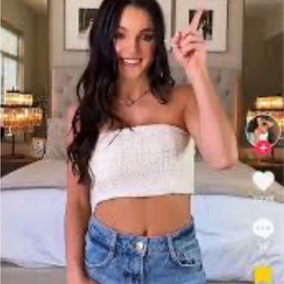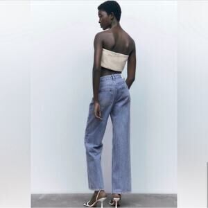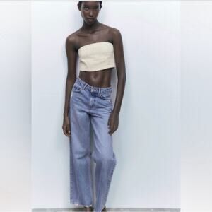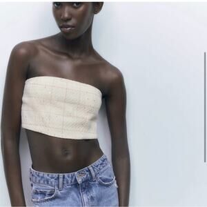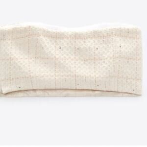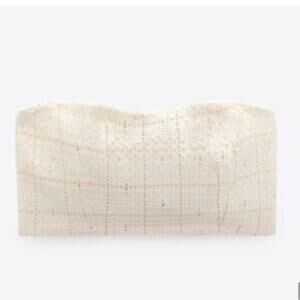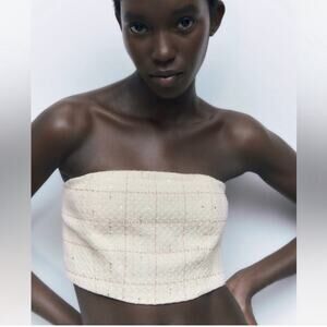ZARA Cream /White Cropped top with straight neckline. Textured Strapless Top