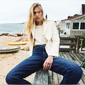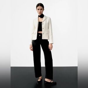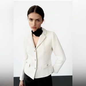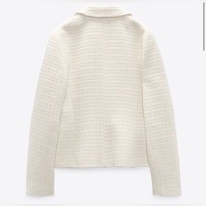 ZARA Cream / white blazer jacket Rhinestones Classy Simple Tweed Sz M