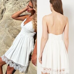 ZARA Crochet Lace Mini Dress White Flared Strappy