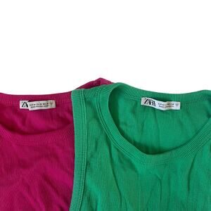ZARA Crop Tank Top Set of 2 Pink and Green Size Medium