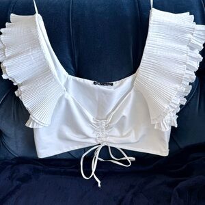 ZARA Crop Top with cute shoulder ruffles. NEW. Large.