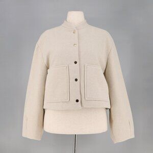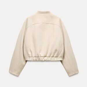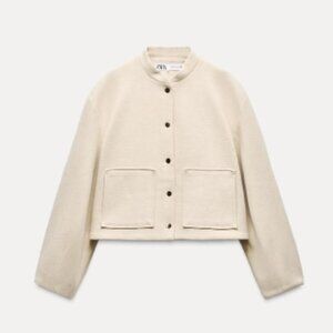 ZARA Cropped Bomber Jacket with Patch Pockets in Sand Size L