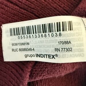 ZARA Cropped Knit Sweater Burgundy Ribbed Hem Crew Neck Long Sleeve Womens M Top