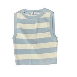 ZARA Cropped Knit Tank Top Sleeveless Stripped Light Blue/Red 2 Pc Bundle Size S