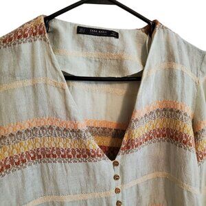 ZARA Cropped Linen Blend Cottage Core Farmhouse Cardigan Medium