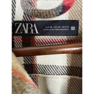 ZARA Cropped Oversized Plaid Shacket Jacket Button Down Pockets XS Red White