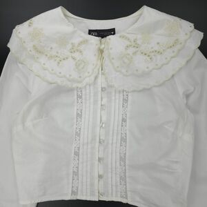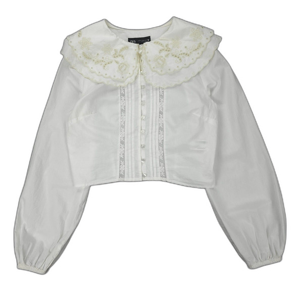 ZARA Cropped Peter Pan Collar Shirt Boho Victorian Cottagecore Preppy Classic