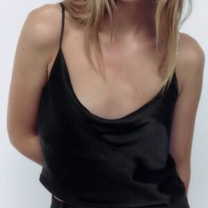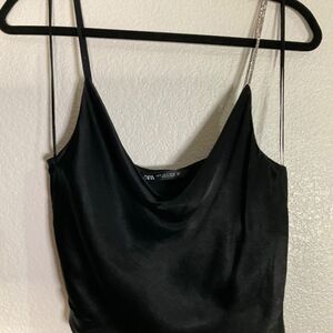 ZARA Cropped Silk Effect Rhinestone Strap Top