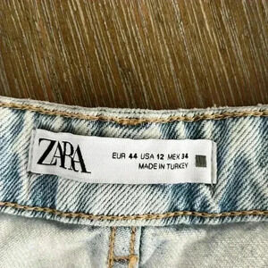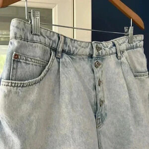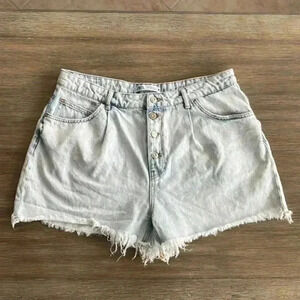 ZARA Cut Off Jeans Shorts Denim Exposed Button Fly Pleated Light Acid Wash Sz 12