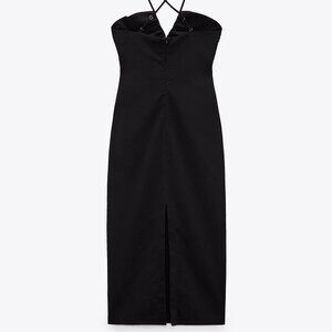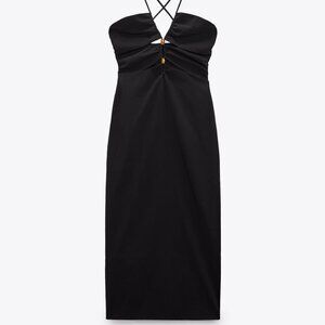 ZARA Cut Out Midi Dress, Wooden Bead Detail, Black, XS