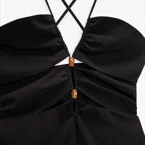 ZARA Cut Out Midi Dress, Wooden Bead Detail, Black, XS