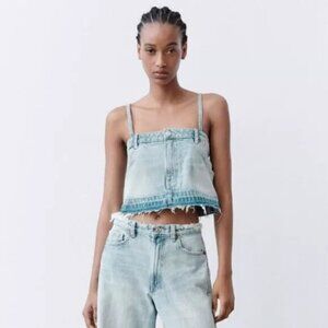 New ZARA Denim Jean Cropped Top Spaghetti Strap Blue Wash Sz S