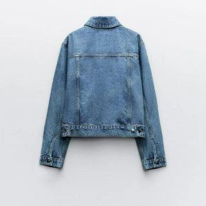 Jacket with lapel collar and long sleeves. Washed effect. Front pockets. Front metal button closure.