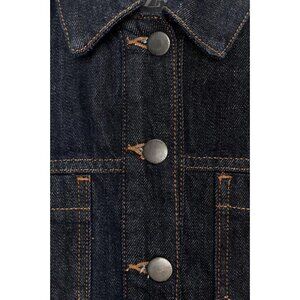 Denim jacket with a lapel collar and short sleeves. Featuring patch pockets on the chest, contrast topstitching and front button fastening.