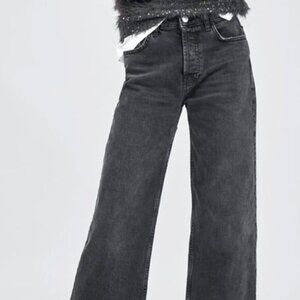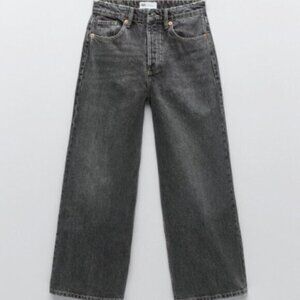 ZARA DENIM JEANS HI-RISE WIDE-LEG CROPPED JEANS GREY 00, 24 x 21